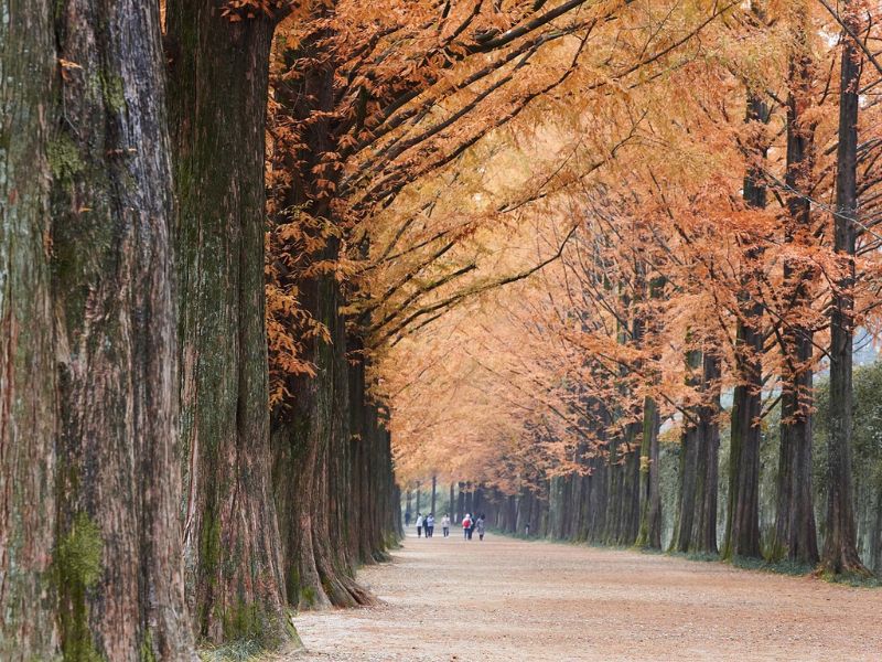 Jalan ini dikenal dengan barisan pohon metasequoia yang menjulang tinggi dan membentuk terowongan hijau yang menakjubkan. Berjalan di bawah rindangnya pohon-pohon ini, terutama saat matahari terbenam, bisa menjadi momen yang sangat romantis.