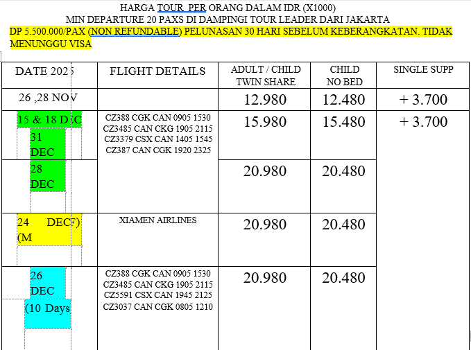Day 10 : GUANGZHOU – JAKARTA ? 04JAN CZ3037 CAN CGK 0805 1210