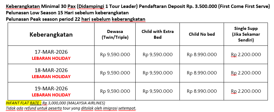 Santap pagi, hari ini tiba waktunya diantar ke Airport untuk kembali ke Jakarta. Sampai jumpa di perjalanan berikutnya Bersama kami.