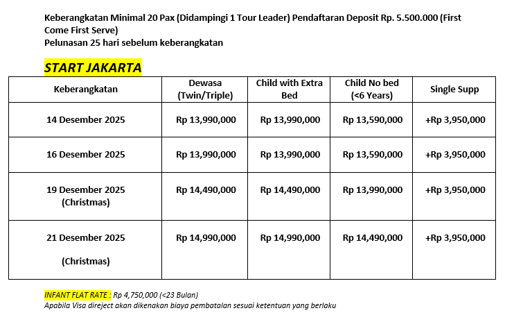 *Tour ini merupakkan tour bersubsidi dengan mengunjungi Shopping Stop, Penalty akan dikenakan untuk peserta yang tidak mengunjungi shopping stop*