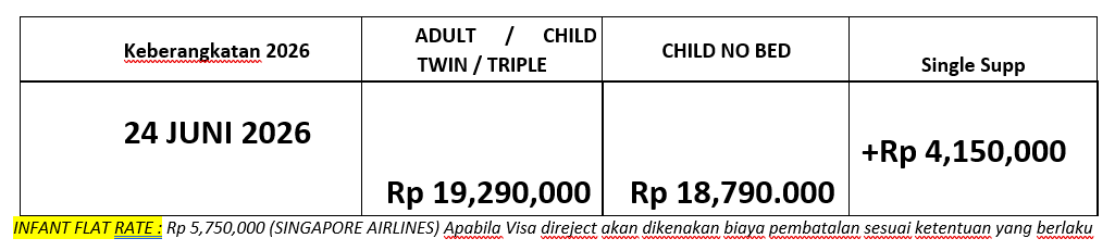 Hari ini kita akan kembali ke tanah air tercinta. Berakhirlah tour yang berkesan ini dan sampai jumpa di tour selanjutnya bersama kami.