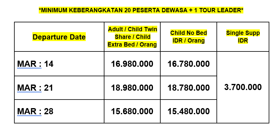 NOTE : TERMASUK KUNJUNGAN TOKO WAJIB SELAMA TOUR BERLANGSUNG (JADE & HEALTH CENTER)