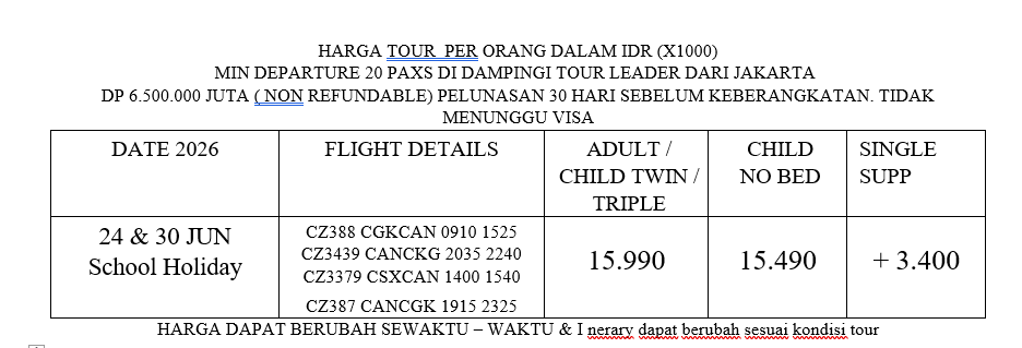 Day 09 : CHANGSHA – X/GUANGZHOU – JAKARTA (MP)