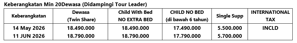 Note : - Jadwal tour dapat berubah sewaktu – waktu sesuai kondisi wisata setempat.