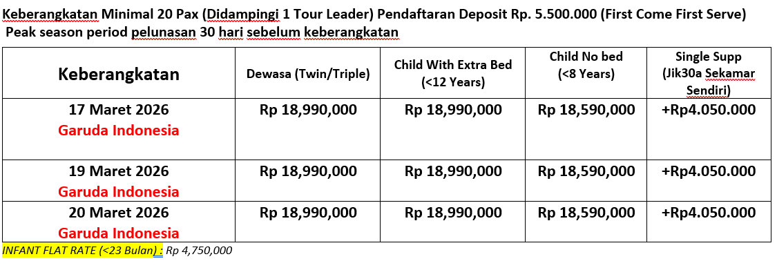 16-21hari sebelum keberangkatan : 100persen Down Payment Hangus