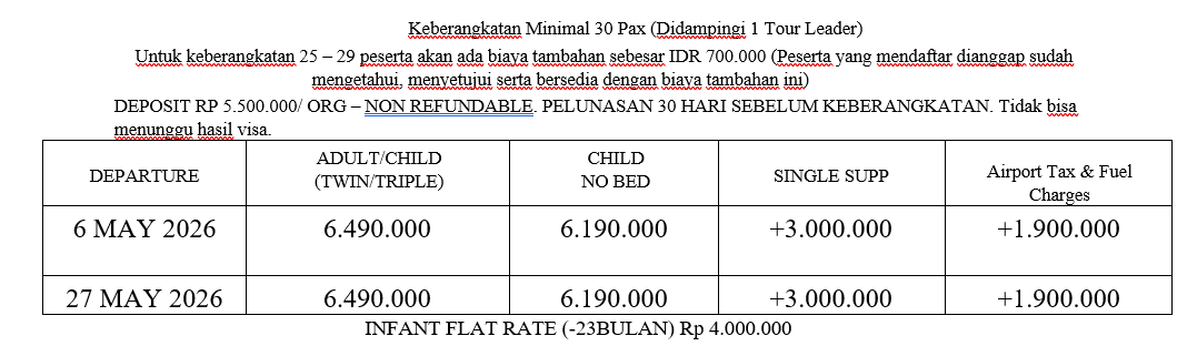 ***Jadwal dan susunan acara dapat berubah sewatu – waktu tanpa pemberitahuan sesuai situasi, kondisi di lapangan dan konektivitas penerbangan***