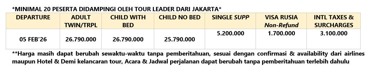 Notes : Aurora Borealis adalah fenomena alam, sehingga pihak travel agent tidak dapat menjamin kemunculannya dan memastikan para peserta dapat melihatnya