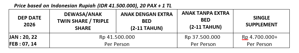 - 21 hari sebelum tanggal keberangkatan : 100persen dari harga tour
