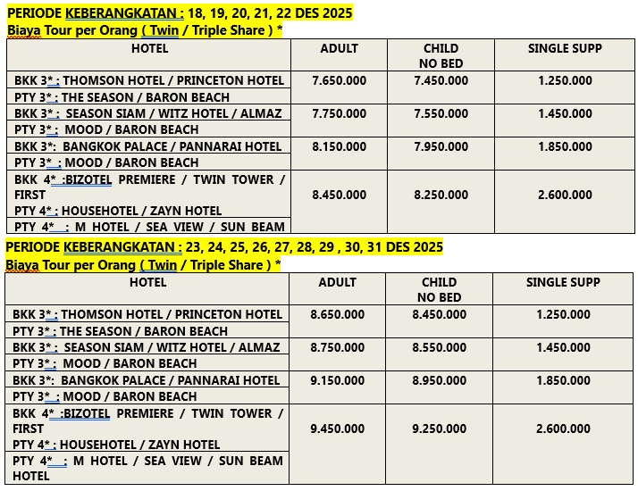 • Transport dan Makan Sesuai Paket Tour