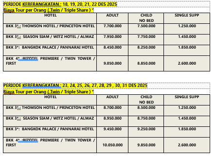 Setibanya di Bandara Bangkok, dijemput oleh perwakilan kami dan diantar menuju hotel untuk check-in dan beristirahat.