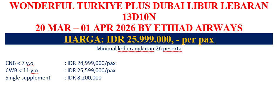 Catatan: Program perjalanan dapat berubah sewaktu – waktu mengikuti situasi dan kondisi pada saat dilapangan dan mengikuti implementasi yang berlaku